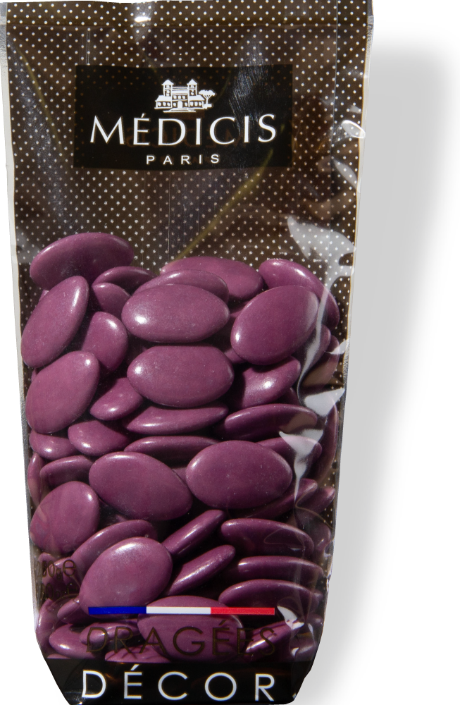 - Ingrédients : SSucre, intérieur chocolat 70%cacao (pâte de cacao, sucre, émulsifiant : lécithine de tournesol) gomme